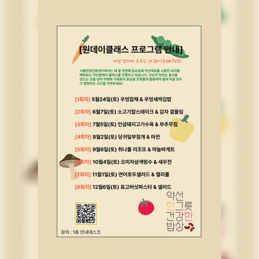 장소: 서울한방진흥센터 3층 약선음식체험관