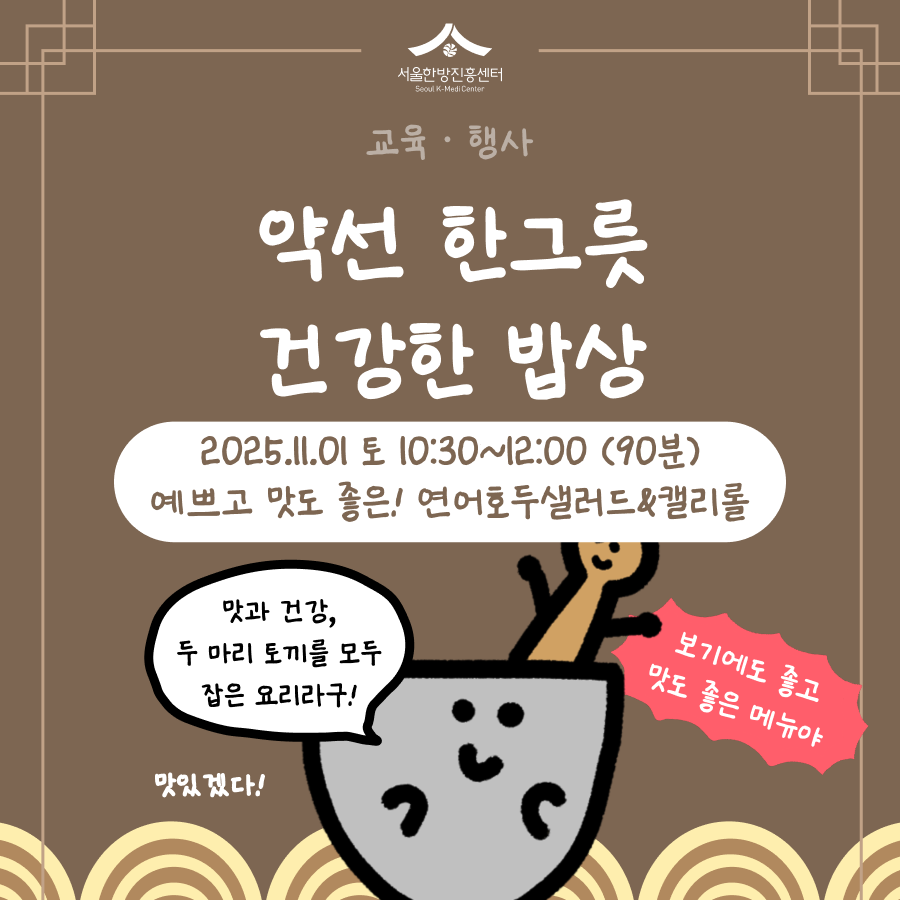 장소: 서울한방진흥센터 3층 약선음식체험관
